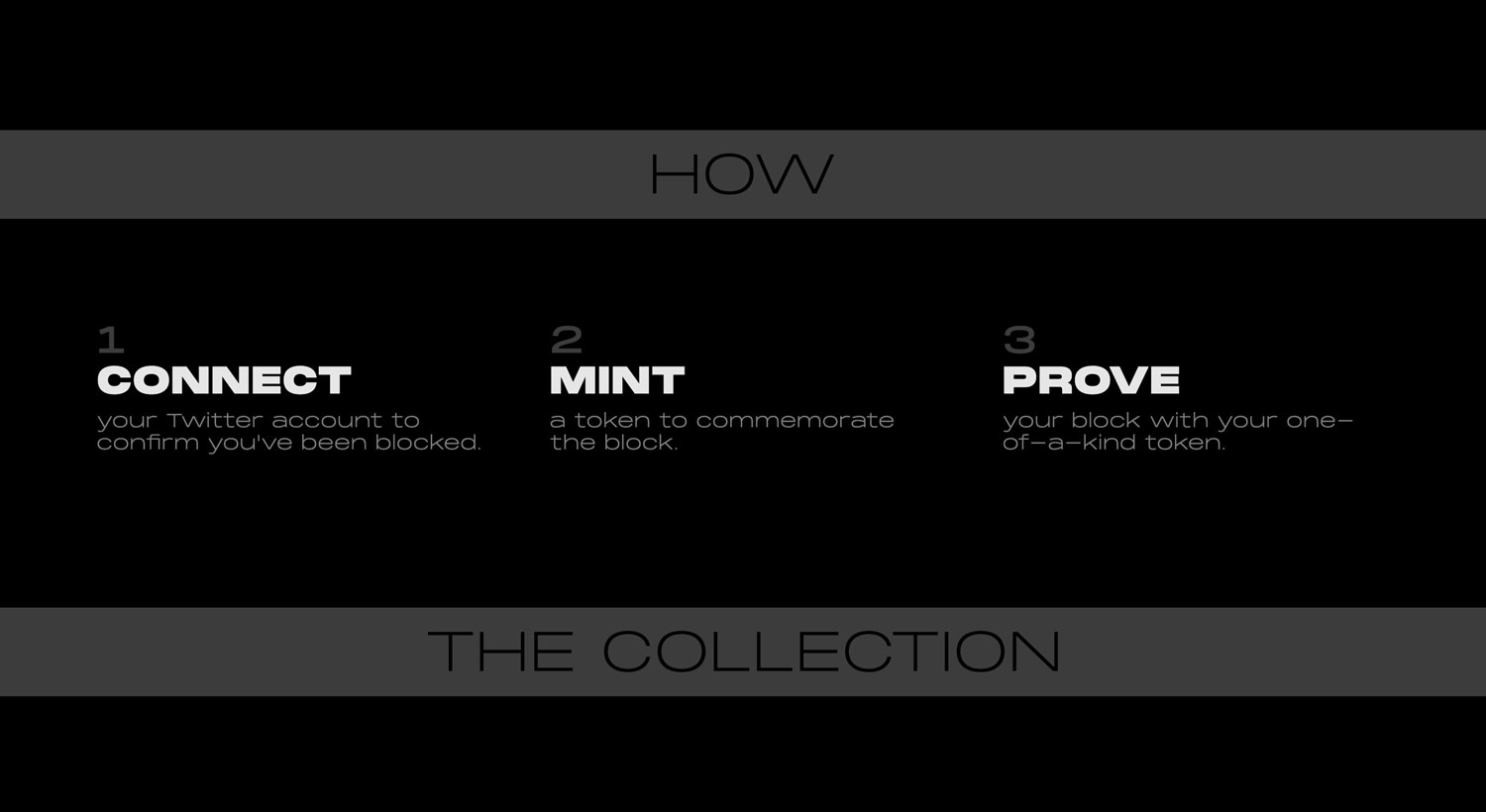 Blockedchain is a new kind of NFT that commemorates notable blocks on Twitter. Log in with Twitter, prove that you’re blocked by one of our chosen accounts, and we’ll mint you a commemorative NFT free of charge. With this cryptographically verified token, distributed across a ledger maintained by millions of computers consuming gigawatts of electricity, you can finally prove you’ve reached the hallowed echelon of people Gary Vaynerchuck doesn’t want to hear from.